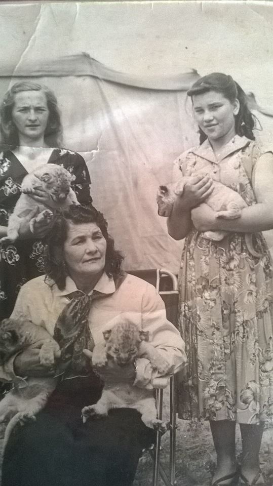 Tato fotografie pochází přibližně z roku 1952 a je na ní vidět, že k cirkusu Metropol divoké šelmy skutečně patří od minulosti (a tato tradice pokračuje dál). Uprostřed sedí velká majitelka cirkusu Metropol, Tornádo a Bratři Šimkové - Pavlína Šimková, po pravé straně je Stanislava Helferová, roz. Šimková - babička majitelky nynějšího cirkusu Metropol Stanislavy Šimkové roz. Helferová. Vlevo stojí teta Edita Berousková.